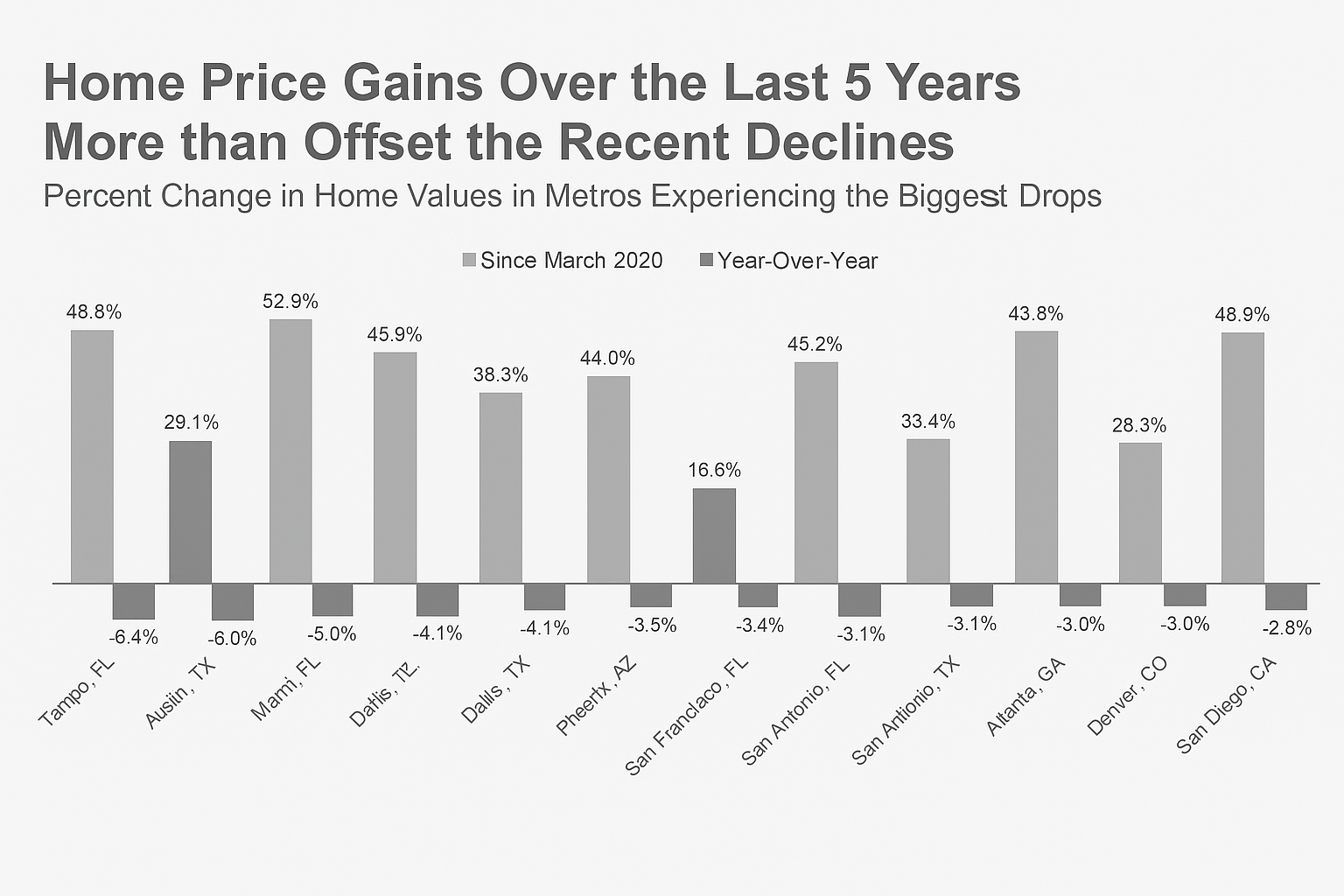 So, what’s that really mean? In most places, prices are on the rise, so this isn’t even a concern. But in the few metros where prices are cooling off a bit, the 5-year gains more than offset those small dips.